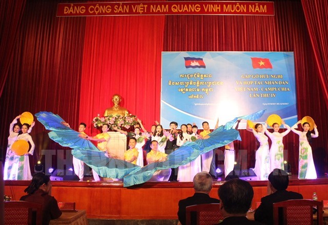 Chương trình văn nghệ “Bài ca hữu nghị” thể hiện quan hệ hữu nghị truyền thống bền chặt giữa hai đất nước, hai dân tộc Việt Nam và Campuchia(Thanhuytphcm.vn) - Tối 7/10, chương trình “Gặp gỡ hữu nghị và hợp tác nhân dân Việt Nam - Campuchia” lần IV đã chính thức khai mạc tại TPHCM với sự tham dự của khoảng 500 đại biểu Việt Nam và Campuchia.