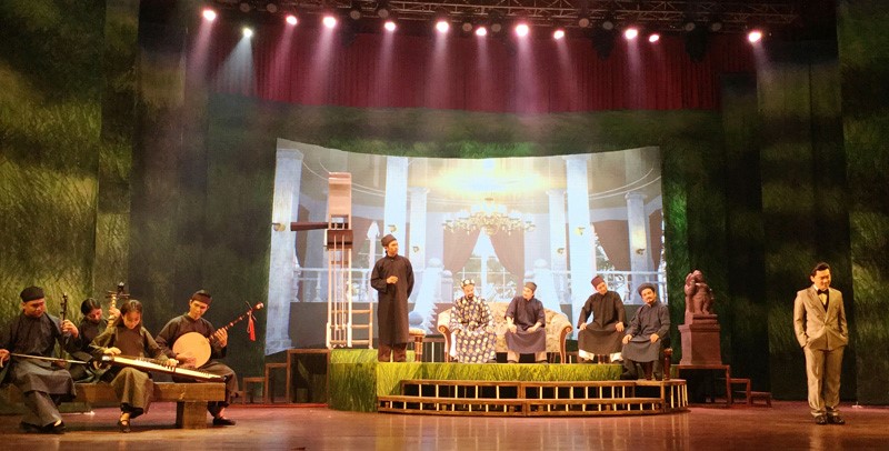 Cảnh trong vở cải lương Thầy Ba Đợi.(Thanhuytphcm.vn) - Sau 3 suất diễn tại TPHCM và Long An (tháng 4), vở cải lương Thầy Ba Đợi (kịch bản: PGS.TS Nguyễn Thế Kỷ, chuyển thể cải lương: Hoàng Song Việt - Phạm Văn Đằng, đạo diễn: NSƯT Triệu Trung Kiên - Lê Trung Thảo) - dự án chào mừng kỷ niệm 100 năm sân khấu cải lương (1918 - 2018) do Đài Tiếng nói Việt Nam, Nhà hát Cải lương Việt Nam và Nhà hát Cải lương Trần Hữu Trang phối hợp thực hiện - chính thức đến với khán giả Thủ đô tại Nhà hát Lớn Hà Nội vào tối 27 và 28/5. Vở diễn cũng là chương trình nghệ thuật phục vụ các đại biểu Quốc hội đang tham gia Kỳ họp thứ 5 Quốc hội khóa XIV tại Hà Nội.