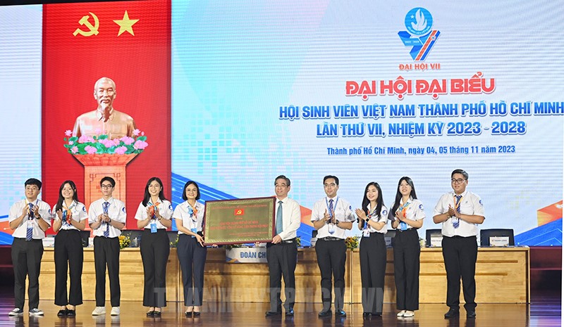 Đồng chí Trương Mỹ Hoa và đồng chí Nguyễn Phước Lộc trao Huân chương Lao động hạng Ba cho Hội Sinh viên Việt Nam TPHCM. (Ảnh: Quốc Thanh)Đồng thời, tiếp tục chú trọng sâu sắc đổi mới mạnh mẽ về phương thức hoạt động gắn với chuyển đổi số trong triển khai các phong trào thi đua chăm lo, hỗ trợ sinh viên phát triển toàn diện, từ đó tạo động lực phấn đấu hấp dẫn, thu hút đông đảo sinh viên TP tham gia vào tổ chức Hội các cấp. Cần coi đây là những nhiệm vụ chính trị quan trọng của tổ chức mình, quan tâm tìm hiểu, nắm bắt các nhóm nhu cầu cơ bản của sinh viên, từ đó thiết kế, triển khai các hoạt động, phong trào phù hợp với đặc trưng của sinh viên, với môi trường, của sinh viên và với xu hướng phát triển theo hướng hiện đại và hội nhập quốc tế của sinh viên thông qua các hình thức sinh động đa dạng. Khẳng định vai trò của tổ chức Hội sinh viên, chăm lo đời sống vật chất, tinh thần và bảo vệ các quyền và lợi ích của sinh viên.