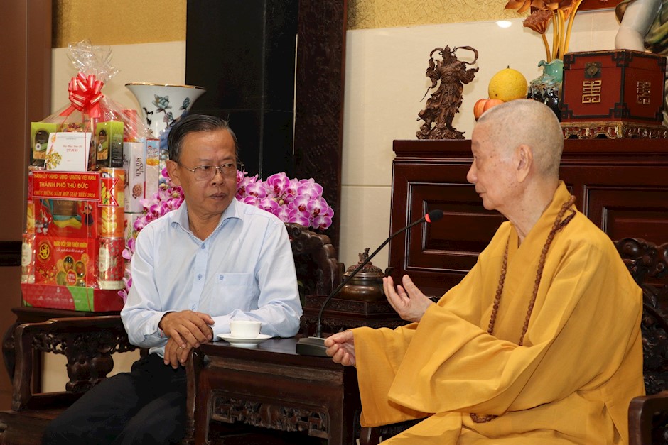Đoàn đã đến thăm và chúc Tết: Đức Pháp chủ Giáo hội Phật giáo Việt Nam (GHPGVN), Đại lão Hòa thượng Thích Trí Quảng, tại chùa Huê Nghiêm; Hòa thượng Thích Thiện Minh, Trưởng Ban Trị sự GHPGVN TP Thủ Đức, Trụ trì Chùa Kỳ Quang 3; Hòa thượng Thích Giác Toàn, Phó Chủ tịch Hội đồng Trị sự GHPGVN, Viện trưởng Viện nghiên cứu Phật học, Trụ trì Pháp viện Minh Đăng Quang; Hòa thượng Thích Minh Hóa, Phó Ban Trị sự GHPGVN TP Thủ Đức, Phó Trụ trì Pháp viện Minh Đăng Quang.