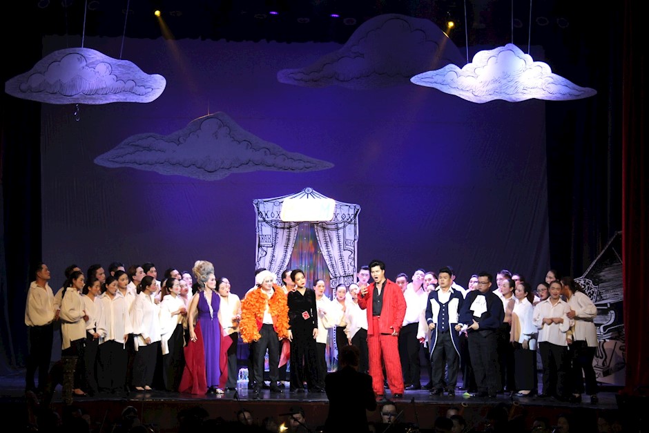 Vở nhạc kịch Quả phụ vui tính có sự tham gia biểu diễn của các nghệ sĩ hàng đầu HBSO là: Phạm Khánh Ngọc, Đào Mác, Duyên Nguyệt, Thu Hường, Phạm Trang, Phan Hữu Trung Kiệt, Trần Thanh Nam cùng dàn nhạc giao hưởng và hợp xướng HBSO. Vở tiếp tục diễn vào tối 13/8, ưu đãi giá vé cho học sinh - sinh viên đến xem vở.