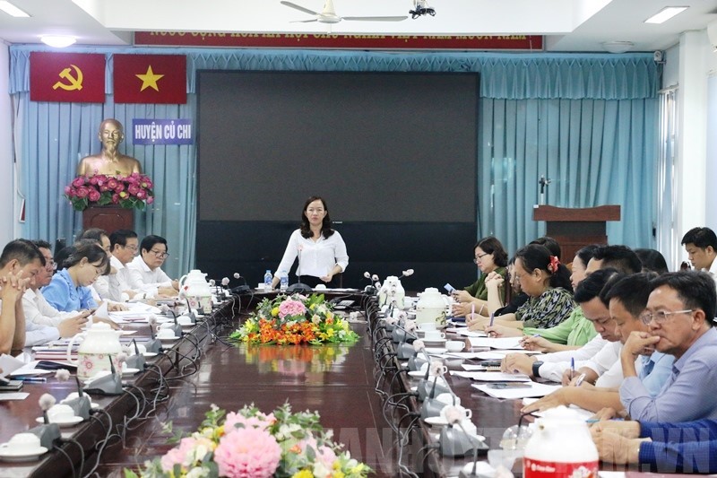 Phó Chủ tịch UBND huyện Nguyễn Thị Hằng trao đổi tại cuộc họp(Thanhuytphcm.vn) - Ngày 14/8, Ban Chỉ đạo công tác huy động trẻ ra lớp và tuyển sinh các lớp đầu cấp năm học 2023 – 2024 huyện Củ Chi đã tổ chức cuộc họp về công tác công tác tuyển sinh đầu cấp năm học 2023 – 2024. Ủy viên Ban thường vụ Huyện ủy, Phó Chủ tịch UBND huyện Nguyễn Thị Hằng chủ trì cuộc họp.