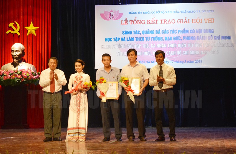 Phó Trưởng Ban Tuyên giáo Thành ủy TPHCM Huỳnh Văn Chúm trao giải các tác phẩm(Thanhuytphcm.vn) - Ngày 17/5, Ban Thường vụ Đảng ủy Khối cơ sở Bộ Văn hóa, Thể thao và Du lịch (VH-TT-DL) tổ chức Lễ trao giải Hội thi sáng tác, quảng bá các tác phẩm có nội dung học tập và làm theo tư tưởng, đạo đức, phong cách Hồ Chí Minh năm 2018. Tham dự buổi lễ có các đồng chí: Huỳnh Văn Chúm, Phó Trưởng Ban Tuyên giáo Thành ủy TPHCM; Lương Văn Nhiền, Bí thư Đảng ủy Khối cơ sở Bộ VH-TT-DL.