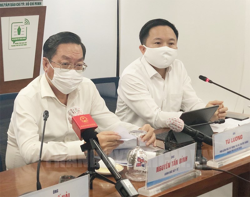 Giám đốc Sở Y tế TP Nguyễn Tấn Bỉnh phát biểu tại buổi họp báo.(Thanhuytphcm.vn) - Tối 1/12, Sở Y tế TPHCM phối họp Trung tâm báo chí TPHCM tổ chức họp báo cung cấp thông tin về một số ca nhiễm Covid -19 tại TPHCM.