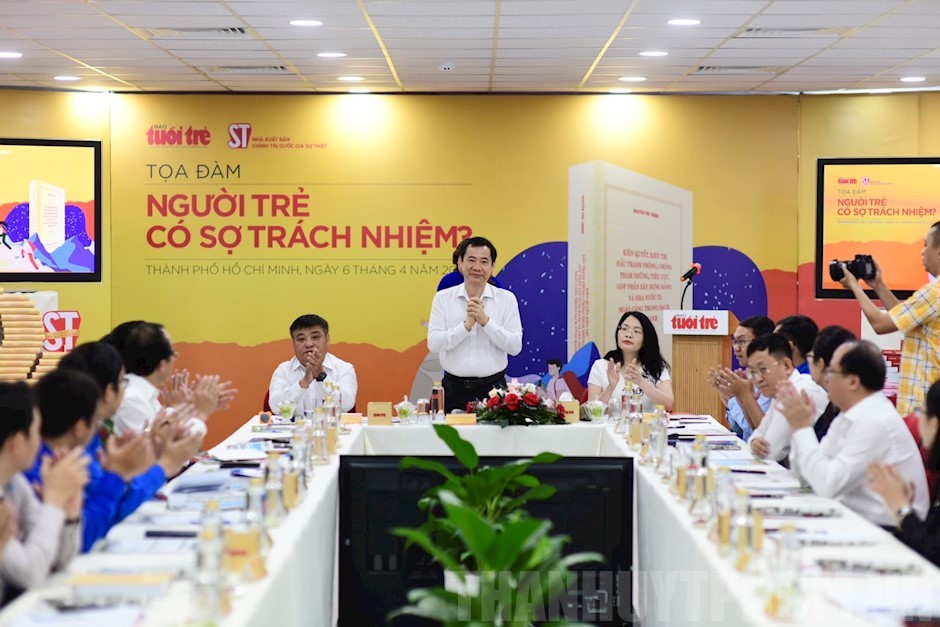 Các đại biểu tham dự tọa đàm "Người trẻ có sợ trách nhiệm?"(Thanhuytphcm.vn) - Sáng 6/4, báo Tuổi Trẻ phối hợp cùng Nhà xuất bản Chính trị quốc gia Sự thật tổ chức tọa đàm "Người trẻ có sợ trách nhiệm?".