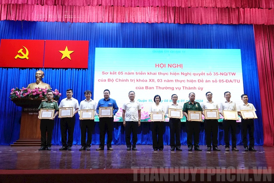 Dịp này, Quận ủy Quận 11 đã trao Giấy khen cho 19 tập thể và 16 cá nhân có thành tích xuất sắc trong 5 năm thực hiện Nghị quyết 35 và 3 năm thực hiện Đề án 05.