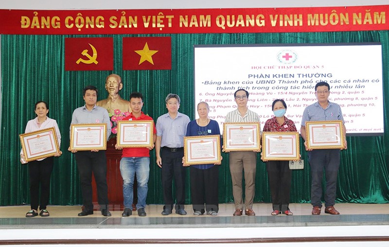 Dịp này, Hội Chữ thập đỏ Quận 5 đã trao tặng 62 thẻ bảo hiểm y tế cho người dân có hoàn cảnh khó khăn; trao cờ thi đua cho 3 đơn vị xuất sắc dẫn đầu; trao kỷ niệm chương “Vì sự nghiệp nhân đạo” của Trung ương Hội Chữ thập đỏ Việt Nam cho 7 cá nhân; trao bằng khen của Trung ương hội, UBND TPHCM cho 21 cá nhân tham gia hiến máu nhân đạo; trao giấy khen của UBND Quận 5 cho 18 tập thể và 5 cá nhân có nhiều thành tích trong tuyên truyền vận động hiến máu nhân đạo…