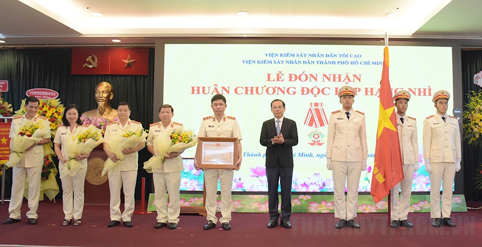 Đồng chí Nguyễn Văn Nên trao Huân chương Độc lập hạng Nhì đến Viện Kiểm sát nhân dân TP(Thanhuytphcm.vn) - Chiều 2/1, Viện Kiểm sát Nhân dân TPHCM tổ chức lễ đón nhận Huân chương Độc lập hạng Nhì và hội nghị triển khai công tác năm 2024. Đến dự có các đồng chí: Nguyễn Văn Nên, Ủy viên Bộ Chính trị, Bí thư Thành ủy TPHCM; Lê Minh Trí, Ủy viên Trung ương Đảng, Bí thư Ban Cán sự Đảng, Viện trưởng Viện Kiểm sát Nhân dân tối cao; Dương Ngọc Hải, Ủy viên Ban Thường vụ Thành ủy, Chủ nhiệm Ủy ban Kiểm tra Thành ủy; Ngô Minh Châu, Thành ủy viên, Phó Chủ tịch UBND TP.