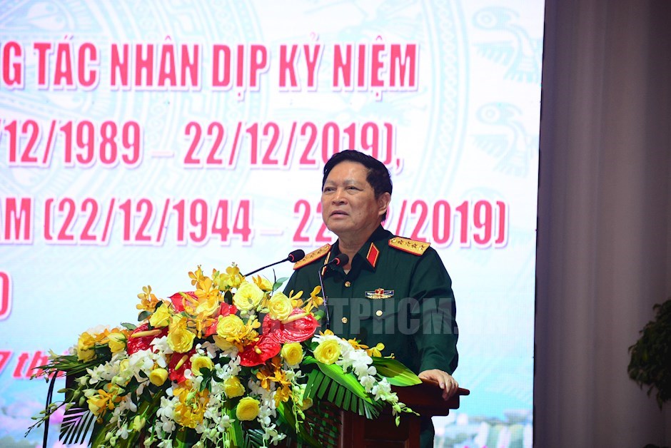 Đại tướng Ngô Xuân Lịch phát biểu tại buổi gặp mặt.(Thanhuytphcm.vn) - Sáng 17/12, tại TPHCM, Quân ủy Trung ương, Bộ Quốc phòng (QUTƯ, BQP) tổ chức gặp mặt các cán bộ cao cấp quân đội nghỉ hưu, nghỉ công tác khu vực phía Nam, nhân dịp kỷ niệm 75 năm Ngày thành lập Quân đội nhân dân (QĐND) Việt Nam (22/12/1944-22/12/2019), 30 năm Ngày Quốc phòng toàn dân (22/12/1989-22/12/2019) và mừng năm mới 2020. Đại tướng Ngô Xuân Lịch, Ủy viên Bộ Chính trị, Phó Bí thư QUTƯ, Bộ trưởng BQP chủ trì buổi gặp mặt.