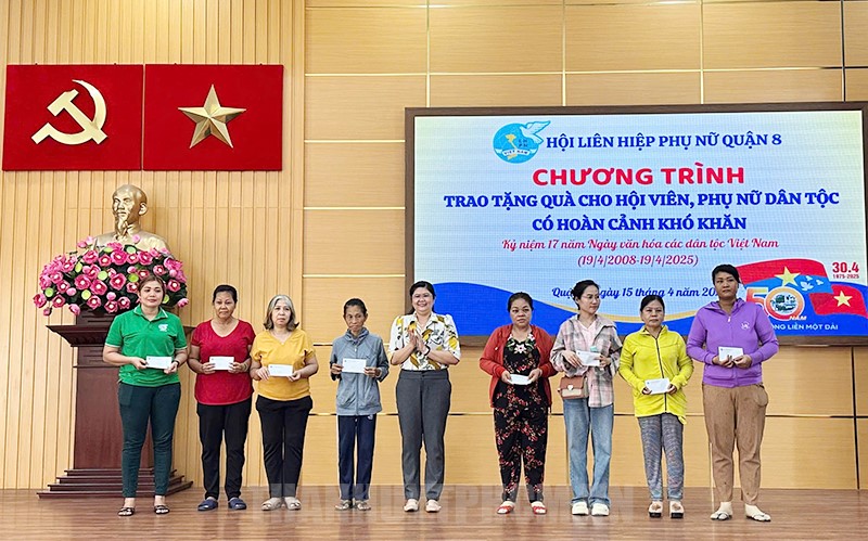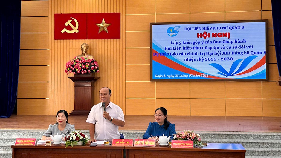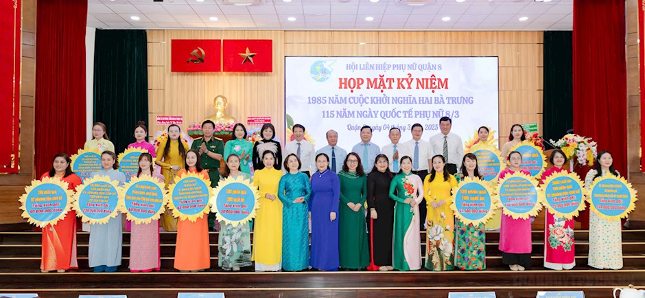 (Thanhuytphcm.vn) - Sáng 4/3, Hội Liên hiệp Phụ nữ (LHPN) Quận 8 tổ chức Họp mặt kỷ niệm 1985 năm cuộc khởi nghĩa Hai Bà Trưng, 115 năm Ngày Quốc tế phụ nữ 8/3. Tham dự họp mặt có các đồng chí: Trần Thị Phi Yến, Trưởng Ban Kinh tế - xã hội Hội LHPN TPHCM; Đỗ Hữu Trí, Phó Bí thư Thường trực Quận ủy Quận 8; Võ Thành Khả, Phó Bí thư Quận ủy Quận 8, Chủ tịch UBND Quận 8; Trần Thanh Hà, Chủ tịch Ủy ban MTTQ Việt Nam Quận 8; Trần Thị Thu Trang, Chủ tịch Hội LHPN Quận 8; Thượng tá Ông Văn An, Phó Tham mưu Trưởng Sư đoàn 302… và hơn 230 cán bộ, hội viên phụ nữ.