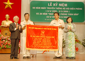 (Website TU) - Sáng 3-3, tại Nhà hát TP, Thành ủy, HĐND, UBND và UBMTTQVN TPHCM đã tổ chức lễ kỷ niệm 50 năm Ngày truyền thống Bộ đội Biên phòng (BĐBP) (3-3-1959 - 3-3-2009), 20 năm Ngày Biên phòng toàn dân (3-3-1989 - 3-3-2009). Đến dự có các đồng chí: Lê Hoàng Quân, Ủy viên Trung ương Đảng, Phó Bí thư Thành ủy, Chủ tịch UBND TP; Thiếu tướng Nguyễn Phước Lợi, Phó Tư lệnh BĐBP VN; Phạm Phương Thảo, Phó Bí thư Thành ủy, Chủ tịch HĐND TP; Nguyễn Thị Thu Hà, Phó Chủ tịch UBND TP; các bà mẹ VNAH, lực lượng vũ trang và đông đảo đoàn viên, thanh niên TP.