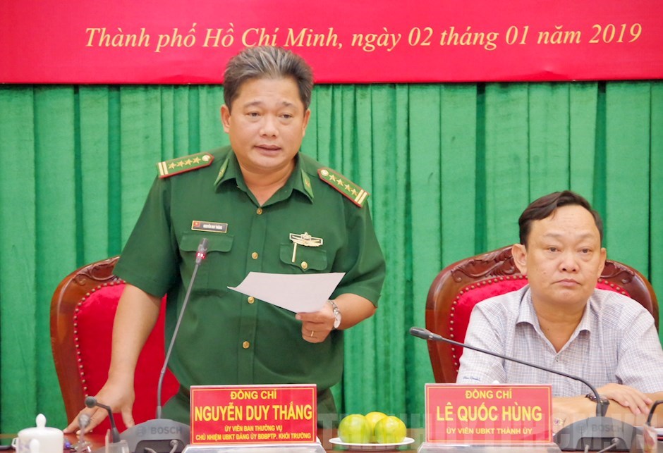Cập nhật 14:26 26-03-2019Bộ đội Biên phòng TPHCM tổ chức đối thoại với cán bộ Đoàn và đội ngũ sĩ quan trẻ(Thanhuytphcm.vn) - Ngày 26/3, Bộ đội Biên phòng (BĐBP) TPHCM tổ chức Hội nghị đối thoại giữa Ban Thường vụ Đảng ủy – Bộ Chỉ huy với cán bộ Đoàn và đội ngũ sỹ quan trẻ. Đây là dịp để cấp ủy, chỉ huy các cấp nắm bắt tâm tư, nguyện vọng, tư tưởng của đội ngũ cán bộ, sĩ quan trẻ; qua đó, kịp thời có giải pháp hỗ trợ, giúp cán bộ, sĩ quan trẻ phấn đấu, rèn luyện, yên tâm công tác, hoàn thành tốt nhiệm vụ được giao. Đại tá Nguyễn Duy Thắng, Bí thư Đảng ủy, Chính ủy BĐBP TP chủ trì buổi đối thoại.
