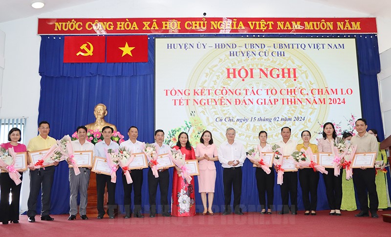 Cập nhật 20:33 21-02-2024Đồng bào các dân tộc trong khối đoàn kết toàn dân đã chung sức đóng góp vào sự nghiệp bảo vệ, xây dựng và phát triển TPHCM(Thanhuytphcm.vn) - Chiều 21/2, Ủy ban MTTQ Việt Nam TPHCM tổ chức buổi họp mặt đồng bào tiêu biểu các dân tộc, mừng xuân Giáp Thìn năm 2024. Đến dự có Phó Bí thư Thành ủy, Trưởng Ban Tổ chức Thành ủy TPHCM Nguyễn Phước Lộc; Ủy viên Ban Thường vụ Thành ủy, Chủ tịch Ủy ban MTTQ Việt Nam TPHCM Trần Kim Yến; Thành ủy viên, Phó Chủ tịch UBND TPHCM Ngô Minh Châu và 200 đại biểu là đồng bào tiêu biểu trên các lĩnh vực, người có uy tín trong đồng bào các dân tộc gồm: Hoa, Chăm, Khmer, Tày, Nùng, Mường, Thái, K'Ho, Sán Chay, Sán Dìu, Êđê, H’Mông... trên địa bàn TP.