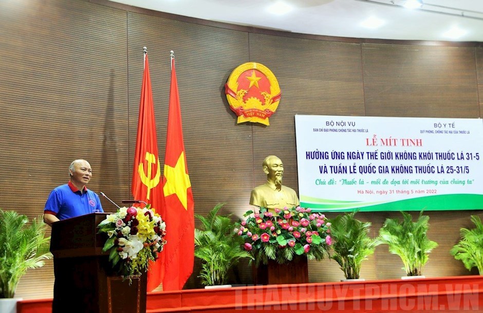 Tại lễ mít tinh, đại diện tổ chức Công đoàn, Đoàn Thanh niên Bộ Nội vụ đã tham luận, chia sẻ những tác hại của việc hút thuốc lá tới sức khỏe, môi trường, cộng đồng; đồng thời, khẳng định sẽ cùng chung tay đẩy lùi, tiến tới loại bỏ thuốc lá trong đội ngũ công chức, viên chức, người lao động và học viên, sinh viên.