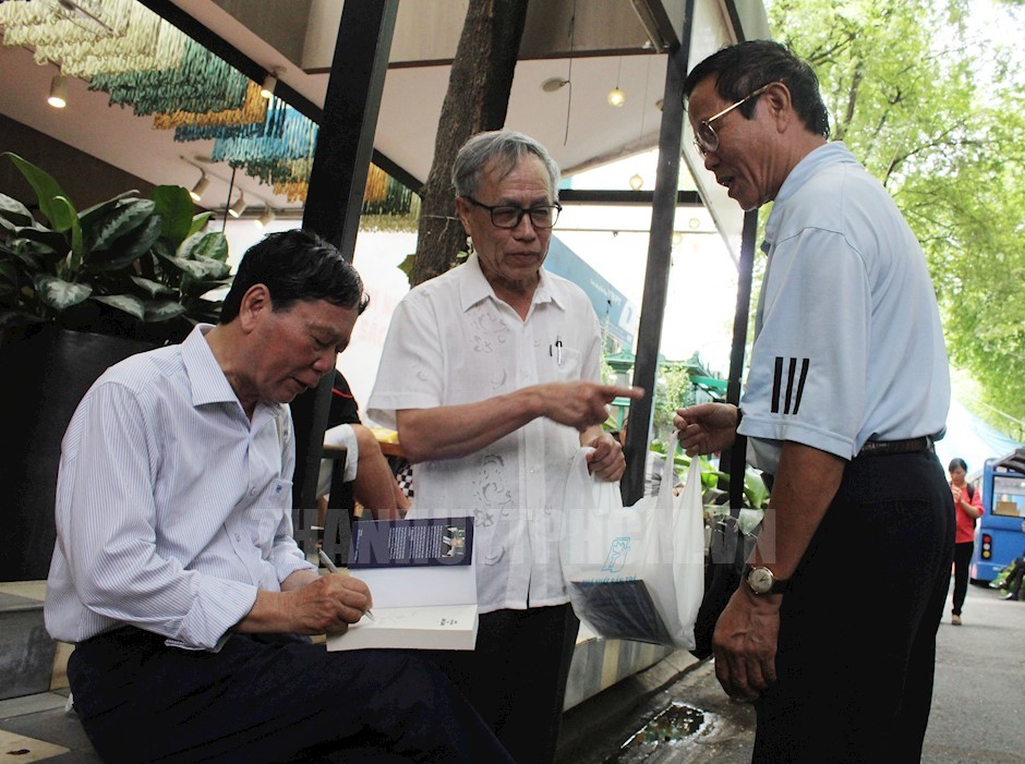 Nhà khoa học - dịch giả Phạm Văn Thiều ký tặng sách cho độc giả(Thanhuytphcm.vn) - Ngày 18/8, tại Đường Sách TPHCM, NXB Trẻ tổ chức giao lưu với 3 nhà khoa học Phạm Văn Thiều, Nguyễn Văn Liễn và Vũ Công Lập là chủ biên của Tủ sách Khoa học - Khám phá nhân kỷ niệm 10 năm thành lập Tủ sách.