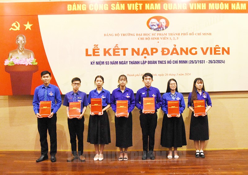 Tại buổi lễ, các đồng chí Bí thư Chi bộ Sinh viên 1, 2, 3 đã thừa ủy quyền của Đảng ủy, công bố và trao quyết định của Đảng ủy Trường về việc kết nạp 7 quần chúng ưu tú vào Đảng Cộng sản Việt Nam gồm: Trương Hồng Nhựt Huy - Sinh viên khoa Giáo dục Quốc phòng; Nguyễn Huỳnh Thiên Lý - Sinh viên khoa Giáo dục Mầm non; Phạm Nguyễn Minh Thư - Sinh viên khoa Giáo dục Tiểu học; Nguyễn Hoàng Minh - Sinh viên khoa Lịch sử; Nguyễn Thị Thu Hậu, Nguyễn Hoàng Huy và Trần Nguyễn Thu Huyền - Sinh viên khoa Hóa học.