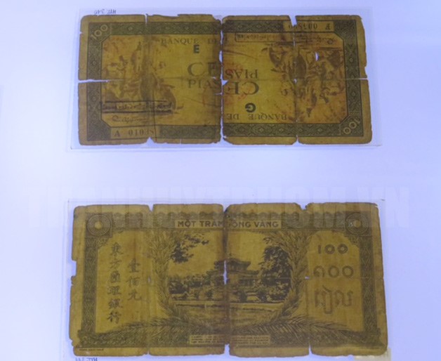 Một mẫu tiền tệ trưng bày tại chuyên đề “Lịch sử tiền tệ Việt Nam - Đồng tiền muôn mặt”. (Ảnh: Lam Điền)