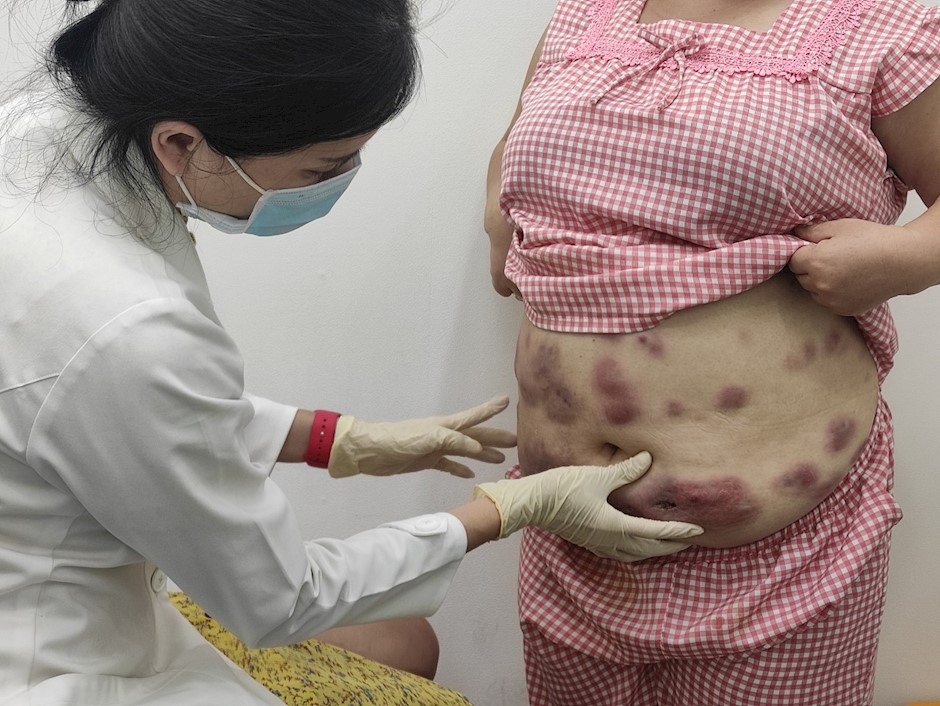 Bệnh nhân nữ, 49 tuổi ngụ tại quận Tân Bình, đến khám trong tình trạng vùng bụng, hông, đùi xuất hiện nhiều nốt đỏ, viêm và chảy mủ. Bệnh nhân cho biết trước đó 2 tháng có xem quảng cáo trên facebook và đến cơ sở thẩm mỹ ở Quận 10 để tiêm tan mỡ… Chi phí cho 1 liệu trình này khoảng hơn 10 triệu đồng.