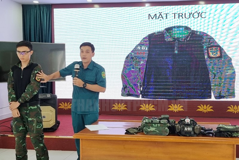 Đơn vị Ban Chỉ huy quân sự phường Đa Kao tham gia phần thi thuyết trình sáng kiến, cải tiến trang phục dã chiến K20.(Thanhuytphcm.vn) - Ngày 16/6, Ban Chỉ huy Quân sự Quận 1 tổ chức khai mạc hội thi sáng kiến, cải tiến mô hình học cụ huấn luyện chiến đấu năm 2023. Tham dự hội thi có đồng chí Trung tá Nguyễn Vĩnh Long, Phó Chỉ huy trưởng Tham mưu trưởng Ban Chỉ huy quân sự Quận 1; Trung tá Nguyễn Văn Ngo, Chính trị viên phó Ban Chỉ huy quân sự quận; Trung tá Ngô Trí Tài, Phó Chỉ huy trưởng Động viên Ban Chỉ huy quân sự quận.