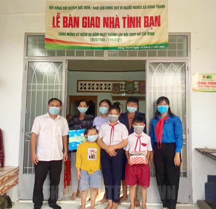 (Thanhuytphcm.vn) - Chào mừng 80 năm Ngày thành lập Đội TNTP Hồ Chí Minh (15/5/1941 – 15/5/2021), chiều 10/5, Hội đồng Đội huyện Hóc Môn phối hợp Ủy ban MTTQ Việt Nam xã Đông Thạnh và Đoàn Thanh niên Cộng sản Hồ Chí Minh xã Đông Thạnh, huyện Hóc Môn đã bàn giao công trình sửa chữa nhà tình bạn cho hộ ông Nguyễn Văn Núi (sinh năm 1969) thuộc diện hộ cận nghèo của địa phương (ảnh).