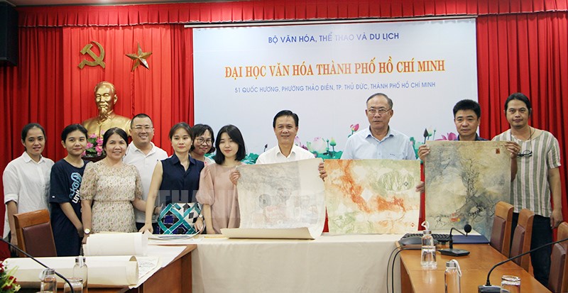Buổi bàn giao hiện vật với sự chứng kiến của đại diện Bảo tàng Mỹ thuật TPHCM và Trường ĐH Văn hóa TPHCM(Thanhuytphcm.vn) - Chiều 23/8, tại Trường Đại học (ĐH) Văn hóa TPHCM đã diễn ra buổi bàn giao 18 tác phẩm tranh và một số tài liệu, hình ảnh của họa sĩ Lê Bá Đảng cho Bảo tàng Mỹ thuật TPHCM. Chương trình được kết nối trực tuyến với ông Lê Tất Luyện (tại Pháp) - nhà sưu tầm đã trao tặng hiện vật cho Việt Nam.