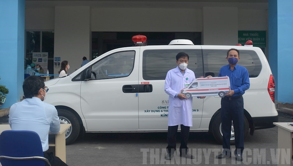 Nhằm góp phần hỗ trợ địa phương trong công tác chăm sóc sức khỏe người dân, sáng 29/7, tại Bệnh viện Quận 12, Công ty CP Xây dựng và Thương mại Sài Gòn 9 đã trao tặng 1 chiếc xe cứu thương, 5.000 khẩu trang y tế, 200 thùng nước suối, 100 thùng sữa đậu nành và 50 triệu đồng tiền mặt cho Bệnh viện Quận.