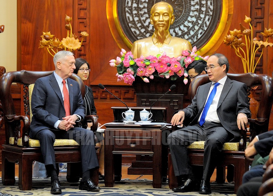 Bộ trưởng Quốc phòng Hoa Kỳ James Mattis cảm ơn Bí thư Thành ủy TPHCM Nguyễn Thiện Nhân đã dành thời gian tiếp đón và cho rằng quan hệ đối tác toàn diện Việt Nam – Hoa Kỳ sẽ mang lại lợi ích cho hai bên, góp phần giữ ổn định tại khu vực.