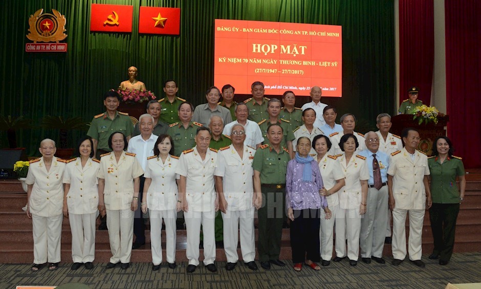 Lãnh đạo ngành Công an chụp ảnh lưu niệm cùng các đại biểu tại buổi họp mặt.(Thanhuytphcm.vn) - Ngày 25/7, Công an TPHCM đã tổ chức buổi gặp mặt biểu dương người có công với cách mạng tiêu biểu trong lực lượng Công an TPHCM nhân kỷ niệm 70 năm ngày Thương binh - Liệt sĩ (27/7/1947 -27/7/2017).