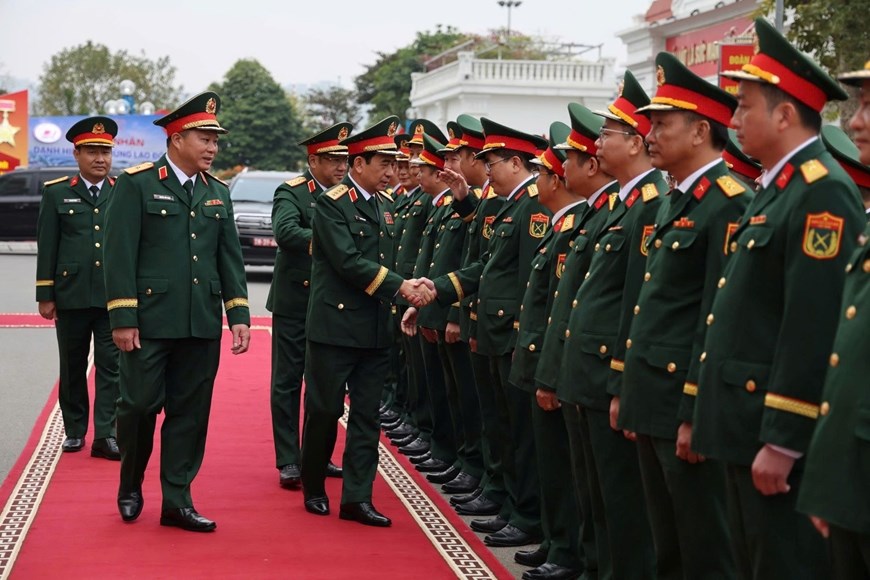 Thay mặt Quân ủy Trung ương, Bộ Quốc phòng, Đại tướng Phan Văn Giang biểu dương, chúc mừng những thành tích đặc biệt xuất sắc mà các thế hệ cán bộ, chiến sĩ, nhân viên, người lao động Binh đoàn 12 - Tổng công ty Xây dựng Trường Sơn đã đạt được trong những năm qua.
