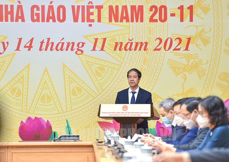 Bộ trưởng Bộ GD-ĐT Nguyễn Kim Sơn phát biểu tại cuộc gặp mặt các nhà giáo tiêu biểu năm 2021.(Thanhuytphcm.vn) - Nhân kỷ niệm Ngày Nhà giáo Việt Nam, Bộ trưởng Bộ GD-ĐT Nguyễn Kim Sơn đã gửi những lời tri ân, chia sẻ, động viên tới các thầy cô giáo, các cán bộ quản lý giáo dục, những người làm việc trong ngành giáo dục. Bộ trưởng chúc toàn thể các nhà giáo, các cán bộ quản lý giáo dục, những người làm việc trong ngành luôn mạnh khỏe, bình an, hạnh phúc và thành công.