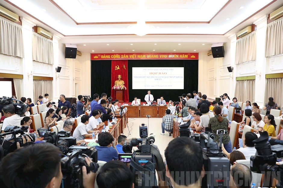 Toàn cảnh buổi họp báo(Thanhuytphcm.vn) - Chiều 27/6, Bộ GD-ĐT tổ chức họp báo kết thúc Kỳ thi Trung học phổ thông (THPT) quốc gia năm 2019. Kỳ thi được tổ chức từ ngày 24/6 đến ngày 27/6.