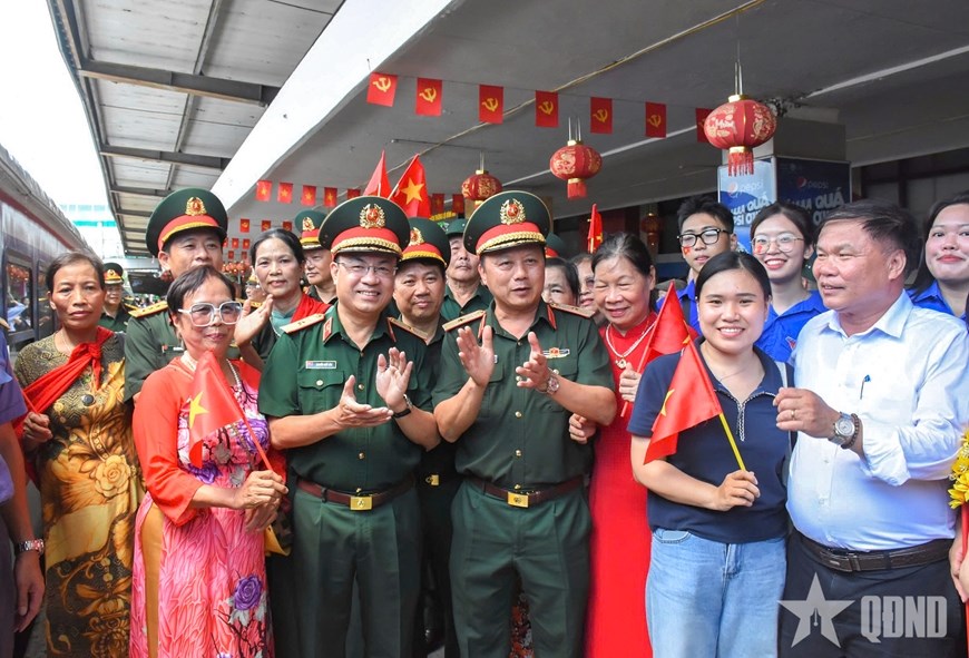 Đại diện lãnh đạo Tổng cục Hậu cần-Kỹ thuật và Cục Xe máy-Vận tải cùng đông đảo nhân dân tiễn các quân nhân tại ga Hà Nội. (Ảnh: QDND.vn)Sau những tháng ngày tập luyện miệt mài trên thao trường khắc nghiệt, những giờ phút hùng tráng, uy nghiêm bước trên Quảng trường Ba Đình lịch sử để lại ấn tượng sâu đậm trong lòng nhân dân cả nước, các khối tham gia diễu binh, diễu hành trong Lễ kỷ niệm 80 năm Cách mạng Tháng Tám và Quốc khánh 2/9 bắt đầu rời Hà Nội, trở về nhiệm vụ thường nhật tại đơn vị.