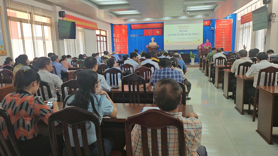 Quang cảnh hội nghị(Thanhuytphcm.vn) - Chiều 14/8, Ban Tuyên giáo Quận ủy quận Tân Bình tổ chức Hội nghị giao ban dư luận xã hội tháng 8/2024. Đồng chí Bùi Thị Hằng, Phó Trưởng ban Tuyên giáo Quận ủy quận Tân Bình chủ trì hội nghị.