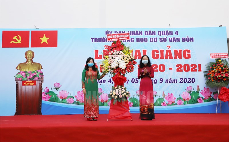 Niềm vui các em học sinh Trường Tiểu học Lê Thánh Tôn trong ngày khai giảng. (Ảnh: Mỹ Duyên)Tại lễ khai giảng Trường THPT Nguyễn Hữu Thọ (Quận 4), đồng chí Lê Văn Chiến, Phó Bí thư Quận ủy Quận 4 đã đến dự. Trong năm học 2019 – 2020, nhà trường đã tập trung chỉ đạo công tác dạy và học, tích cực đổi mới phương pháp, dạy thực chất, học thực chất, đánh giá thực chất. Ngoài chương trình học chính khóa, nhà trường còn đẩy mạnh các hoạt động giáo dục ngoài giờ, giáo dục truyền thống cho học sinh. Kết quả năm học qua, trường có 99,8% học sinh lớp 12 tốt nghiệp kỳ thi THPT quốc gia; có 76,4% học sinh đạt học lực khá, giỏi.