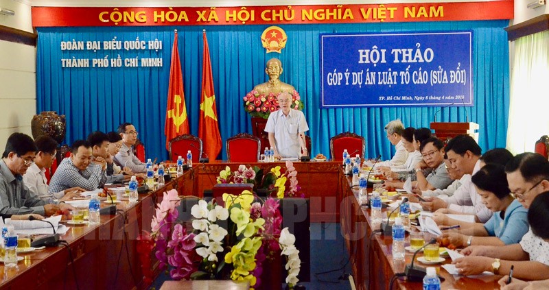 Hội thảo góp ý dự án Luật Tố cáo (sửa đổi).(Thanhuytphcm.vn) - Sáng 6/4, Đoàn Đại biểu Quốc hội TPHCM tổ chức hội thảo góp ý dự án Luật Tố cáo (sửa đổi). Phó Trưởng đoàn chuyên trách Đại biểu Quốc hội TPHCM Phan Nguyễn Như Khuê chủ trì hội thảo.