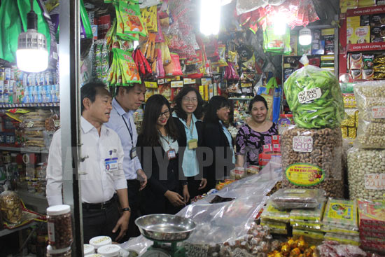 Chi bộ và Ban quản lý chợ Tân Định vận động thương nhân bán hàng đúng giá, đảm bảo vệ sinh an toàn thực phẩm.
