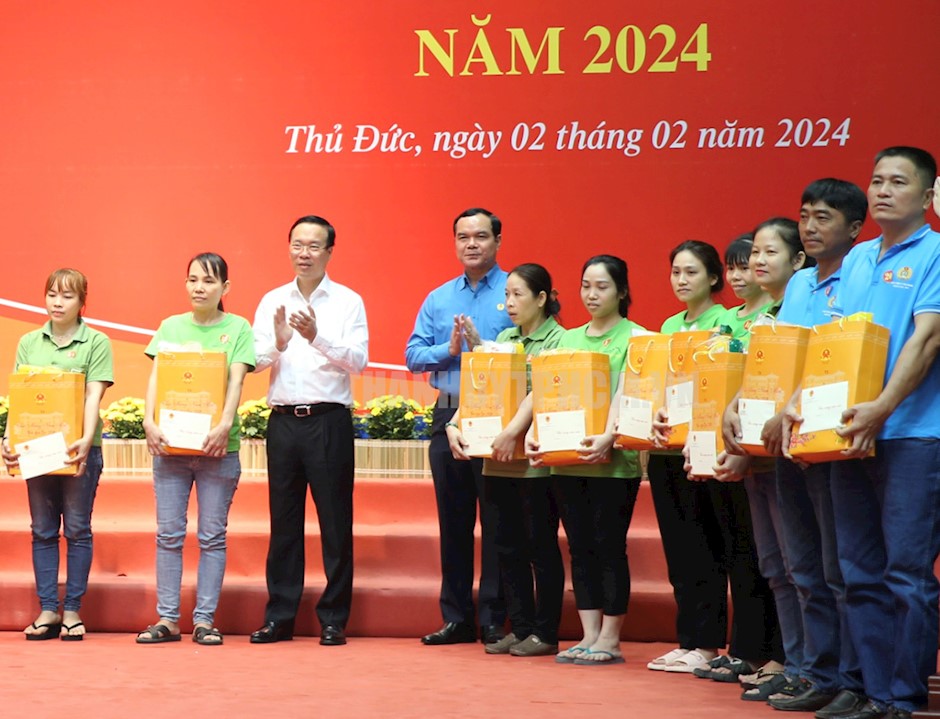 Tết cổ truyền của dân tộc Việt Nam luôn là Tết nhân văn, với phương châm bảo đảm công tác chăm lo cho nhà nhà có Tết, người người có Tết, trong chương trình “Tết sum vầy - Xuân tri ân” năm 2024, Chủ tịch nước và đoàn công tác của Chủ tịch nước trao tặng 500 phần quà cho công nhân, người lao động, những hộ gia đình chính sách, người nghèo, người có hoàn cảnh khó khăn trên địa bàn TP. Trong đó, Ủy ban Trung ương MTTQ Việt Nam trao 200 phần quà trao cho hộ nghèo; Tổng LĐLĐ Việt Nam trao 300 phần quà trao cho công nhân có hoàn cảnh khó khăn trên địa bàn TPHCM.