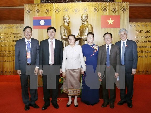 Chủ tịch Quốc hội Việt Nam Nguyễn Thị Kim Ngân và Chủ tịch Quốc hội Lào với các đại biểu. (Ảnh: TTXVN)