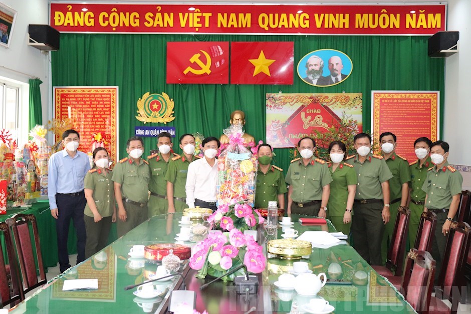 Đồng chí Nguyễn Minh Nhựt thăm và chúc tết tại Công an quận(Thanhuytphcm.vn) - Chiều 28/1, đồng chí Nguyễn Minh Nhựt, Phó Bí thư Quận ủy, Chủ tịch UBND quận Bình Tân dẫn đầu đoàn công tác đi thăm và chúc Tết các đơn vị nhân dịp Xuân Nhâm Dần năm 2022. Cùng đi có đồng chí Nguyễn Văn Lăm, Chánh Văn phòng UBND quận cùng đại diện các đơn vị.