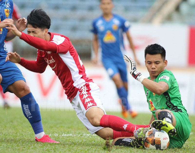 Dù có thế trận lấn lướt, nhưng CLB TPHCM lại bất ngờ bị thua trước vào phút 62 sau pha ghi bàn của cầu thủ ngoại Lucas (Quảng Nam) từ cú đánh đầu cận thành. Nhưng chỉ 5 phút sau, Viết Phú đã kịp đánh đầu gỡ hòa 1-1 từ pha đá phạt của Công Phượng.