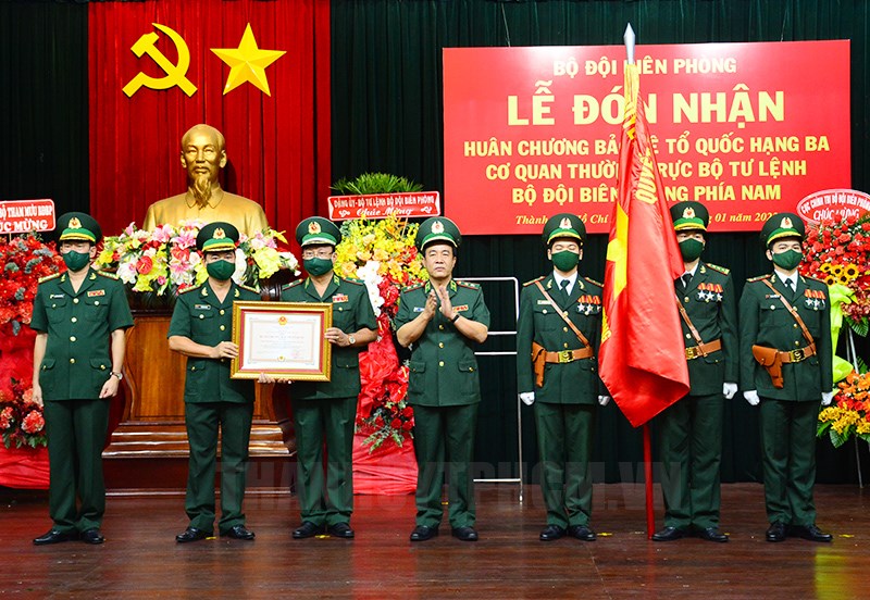 Cơ quan Thường trực Bộ Tư lệnh BĐBP phía Nam đón nhận Huân chương Bảo vệ Tổ quốc hạng Ba tại buổi lễ.(Thanhuytphcm.vn) - Chiều tối 8/1, tại TPHCM, Cơ quan Thường trực Bộ Tư lệnh Bộ đội Biên phòng (BĐBP) phía Nam đã tổ chức Lễ đón nhận Huân chương Bảo vệ Tổ quốc hạng Ba.
