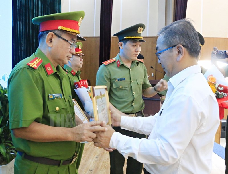 Đồng chí Võ Ngọc Quốc Thuận trao tặng giấy khen đến các tập thể, cá nhân xuất sắc(Thanhuytphcm.vn) - Chiều 10/1, Công an Quận 8 tổ chức hội nghị tổng kết nghị quyết, chương trình công tác năm 2023 và triển khai nghị quyết, chương trình công tác năm 2024.