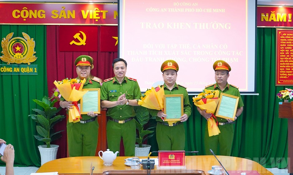 Dịp này, UBND Quận 1 trao Giấy khen đến tập thể Công an Quận 1 đã có thành tích trong công tác đấu tranh phòng chống tội phạm trên địa bàn quận.