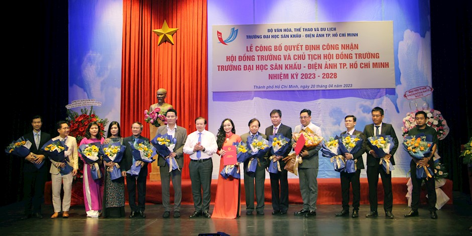 Tại buổi lễ, đại diện Vụ Tổ chức cán bộ, Bộ Văn hóa, Thể thao và Du lịch (VHTTDL) đã thông qua hai quyết định của Bộ trưởng Bộ VHTTDL về việc công nhận Hội đồng trường và Chủ tịch Hội đồng trường. Theo đó, Hội đồng trường Trường ĐH Sân khấu - Điện ảnh TPHCM nhiệm kỳ 2023 - 2028 gồm 15 thành viên, đại diện cho đội ngũ giảng viên, viên chức, người lao động, người học của Trường và một số thành viên bên ngoài thuộc nhiều cơ quan, đơn vị là những chuyên gia có uy tín, nhiều kinh nghiệm trong lĩnh vực sân khấu - điện ảnh, như bà Phan Linh Chi, Phó Vụ trưởng Vụ Kế hoạch - Tài chính, Bộ VHTTDL; ông Đỗ Lệnh Hùng Tú, Chủ tịch Hội Điện ảnh Việt Nam; ông Giang Mạnh Hà, Phó Chủ tịch Hội Nghệ sĩ sân khấu Việt Nam, Chủ tịch Hội Văn học Nghệ thuật tỉnh Đồng Nai; ông Lê Quý Dương, Phó Chủ tịch Hiệp hội xúc tiến và phát triển Điện ảnh Việt Nam; ông Trần Ngọc Giàu, Chủ tịch Hội Sân khấu TPHCM. Hội đồng trường cũng đã thống nhất bầu Thạc sĩ - NSƯT Lê Nguyên Đạt, Bí thư Chi bộ giảng viên 2, Chủ tịch Công đoàn cơ sở giữ chức vụ Chủ tịch Hội đồng trường.