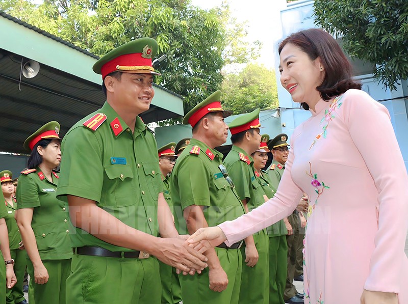 Đồng chí Phạm Thị Thanh Hiền động viên các lực lượng trước giờ ra quân cao điểm(Thanhuytphcm.vn) – Sáng 15/12, Công an huyện Củ Chi tổ chức lễ ra quân cao điểm tấn công trấn áp tội phạm, đảm bảo an ninh trật tự Tết Dương lịch, Tết Nguyên đán Giáp Thìn 2024 trên địa bàn huyện. Tham dự buổi lễ có các đồng chí: Lê Thanh Phong, Phó Bí thư Thường trực Huyện ủy; Phạm Thị Thanh Hiền, Phó Bí thư Huyện ủy, Chủ tịch UBND huyện.