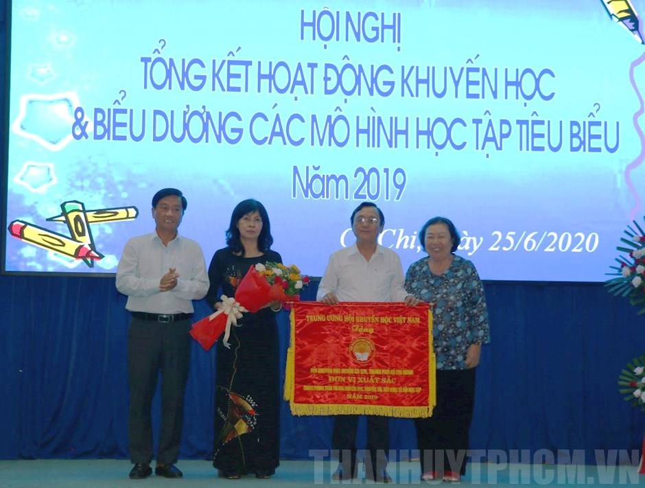 Hội khuyến học huyện Củ Chi nhận cờ thi đua xuất sắc của Hội Khuyến học Việt Nam.(Thanhuytphcm.vn) - Ngày 25/6, UBND huyện Củ Chi đã tổ chức tổng kết hoạt động khuyến học và biểu dương các mô hình học tập tiêu biểu năm 2019.