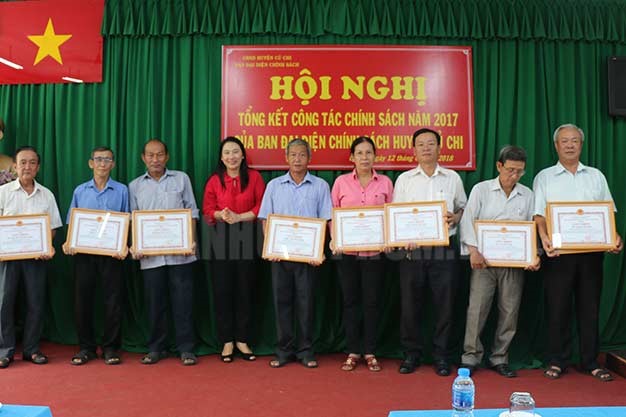 Dịp này, UBND huyện Củ Chi tặng giấy khen cho 29 tập thể và 32 cá nhân có nhiều đóng góp trong hoạt động của Ban đại diện chính sách từ huyện đến cơ sở năm qua.