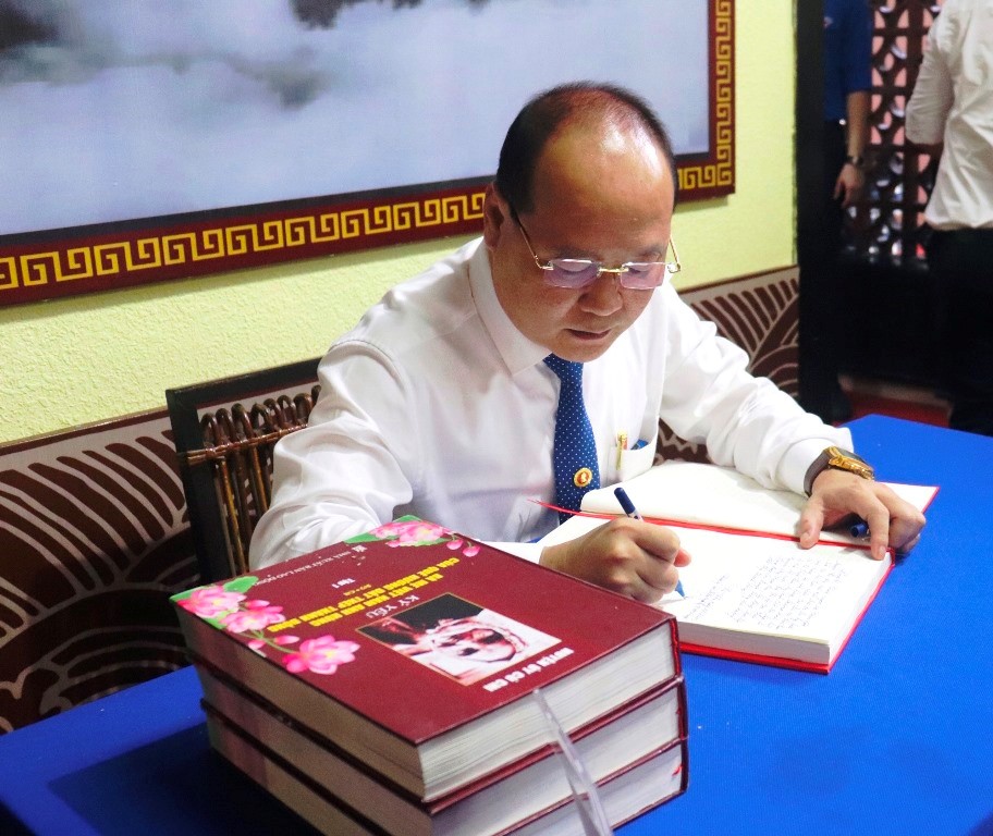 Bí thư Huyện ủy Nguyễn Quyết Thắng ghi vào sổ lưu niệm tại Lễ giỗ(Thanhuytphcm.vn) - Nhân dịp kỷ niệm 76 năm Ngày Thương binh, Liệt sĩ (27/7/1947 – 27/7/2023), ngày 27/7, Huyện ủy, HĐND, UBND, Ủy ban MTTQ Việt Nam huyện Củ Chi đã tổ chức Lễ giỗ Bà Mẹ Việt Nam anh hùng, anh hùng, liệt sĩ, đồng bào, chiến sĩ anh dũng hy sinh vì sự nghiệp giải phóng dân tộc.