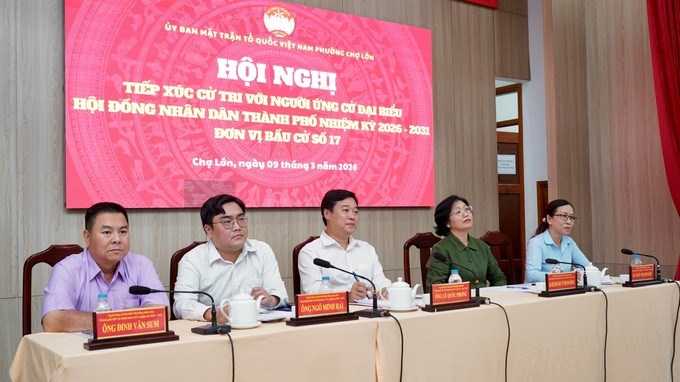 Những người ứng cử đại biểu HĐND TPHCM tại hội nghị. (Ảnh: SGGP)Chiều 9/3, Ban Thường trực Ủy ban MTTQ Việt Nam phường Chợ Lớn (TPHCM) tổ chức hội nghị tiếp xúc cử tri với những người ứng cử đại biểu HĐND TPHCM nhiệm kỳ 2026-2031 (Đơn vị bầu cử số 17).