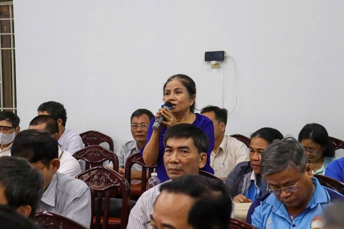 Cử tri trình bày vấn đề tại buổi làm việcCử tri đã nêu ý kiến liên quan tình trạng lấn chiếm vỉa hè, lòng đường; thu gom rác thải; quy hoạch treo gây khó khăn cho người dân; quản lý số điện tiêu thụ...